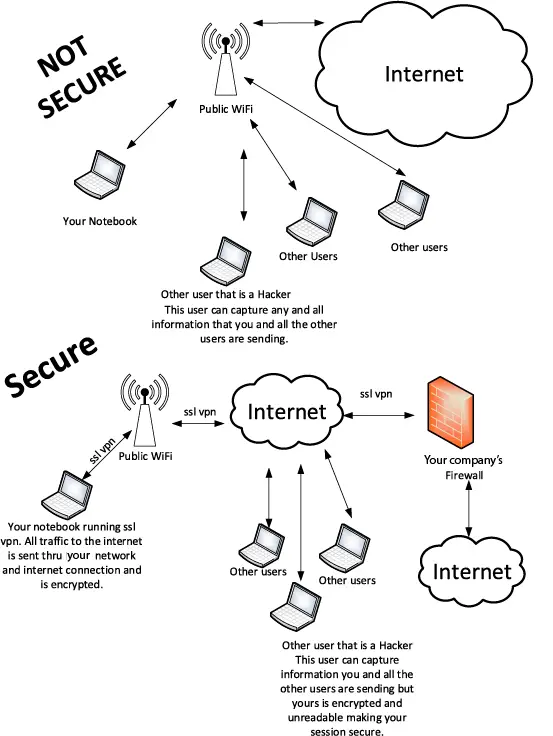 So how do you protect yourself or your business from becoming a victim the next time you want to use free-Wi-Fi? You can make yourself much more secure by utilizing a virtual private network connection (VPN).